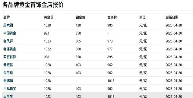 周六福、潮宏基、金至尊,这几家像约好了一样,都冲到1028元一克,就跟选秀似的,非要争个头名。