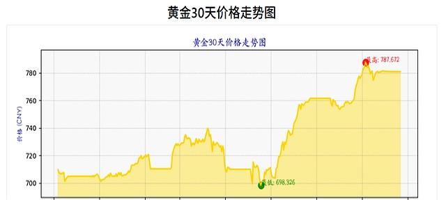 这金价走势,最近三十天,最高787.672元,最低698.326元,跟坐过山车似的。